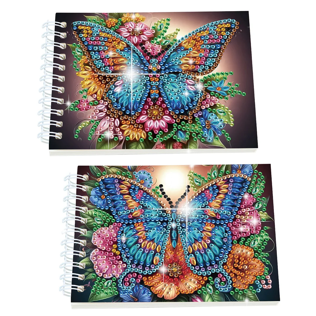 2 Pack Butterfly DIY Diamond Art Spiral Notebook Kit 80 Pages No Lines