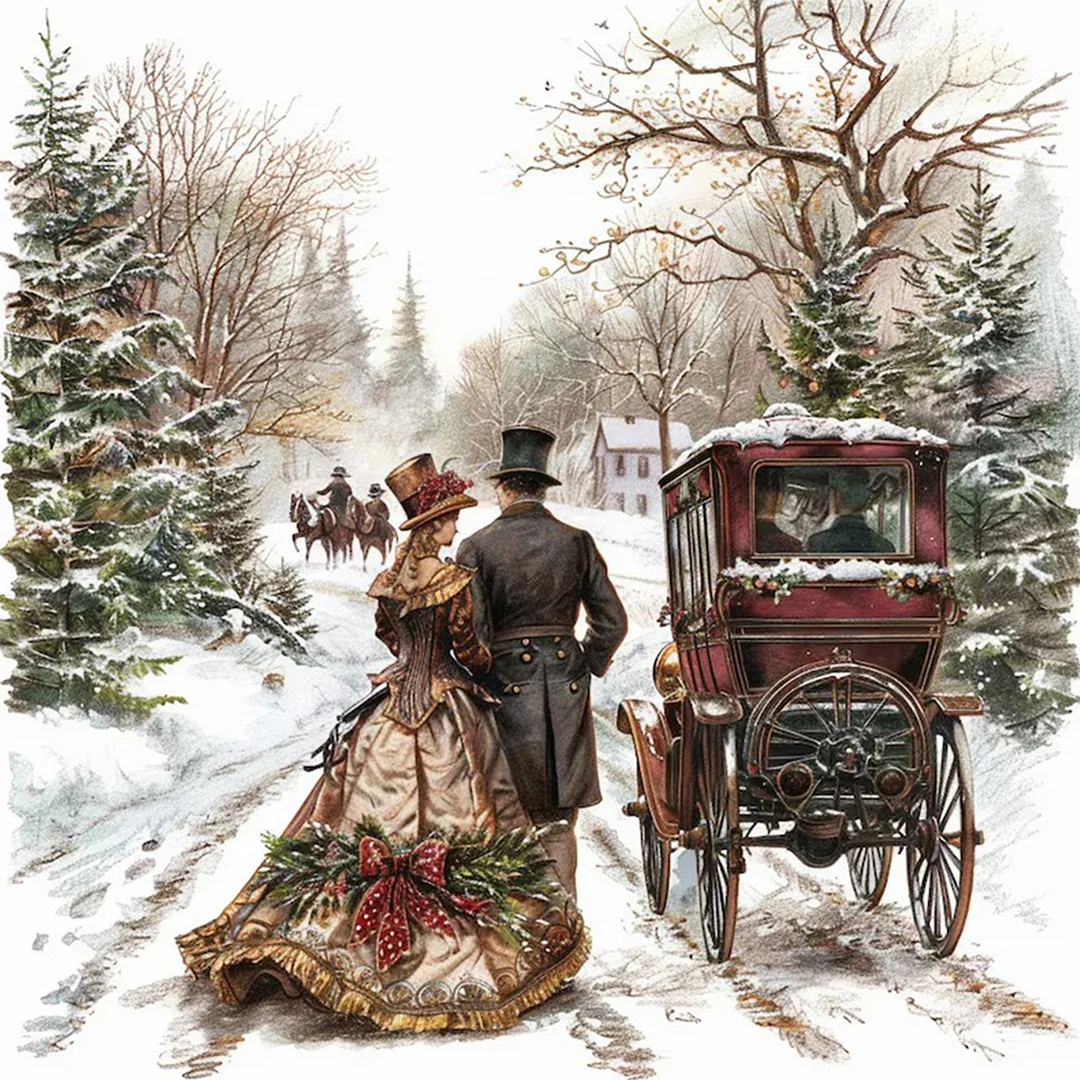 (40*40cm)Christmas Snow Scene - Full Round Drill Diamond Painting