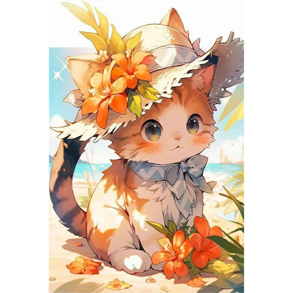 (40*60cm)Cat by The Sea - Full Round Drill Diamond Painting