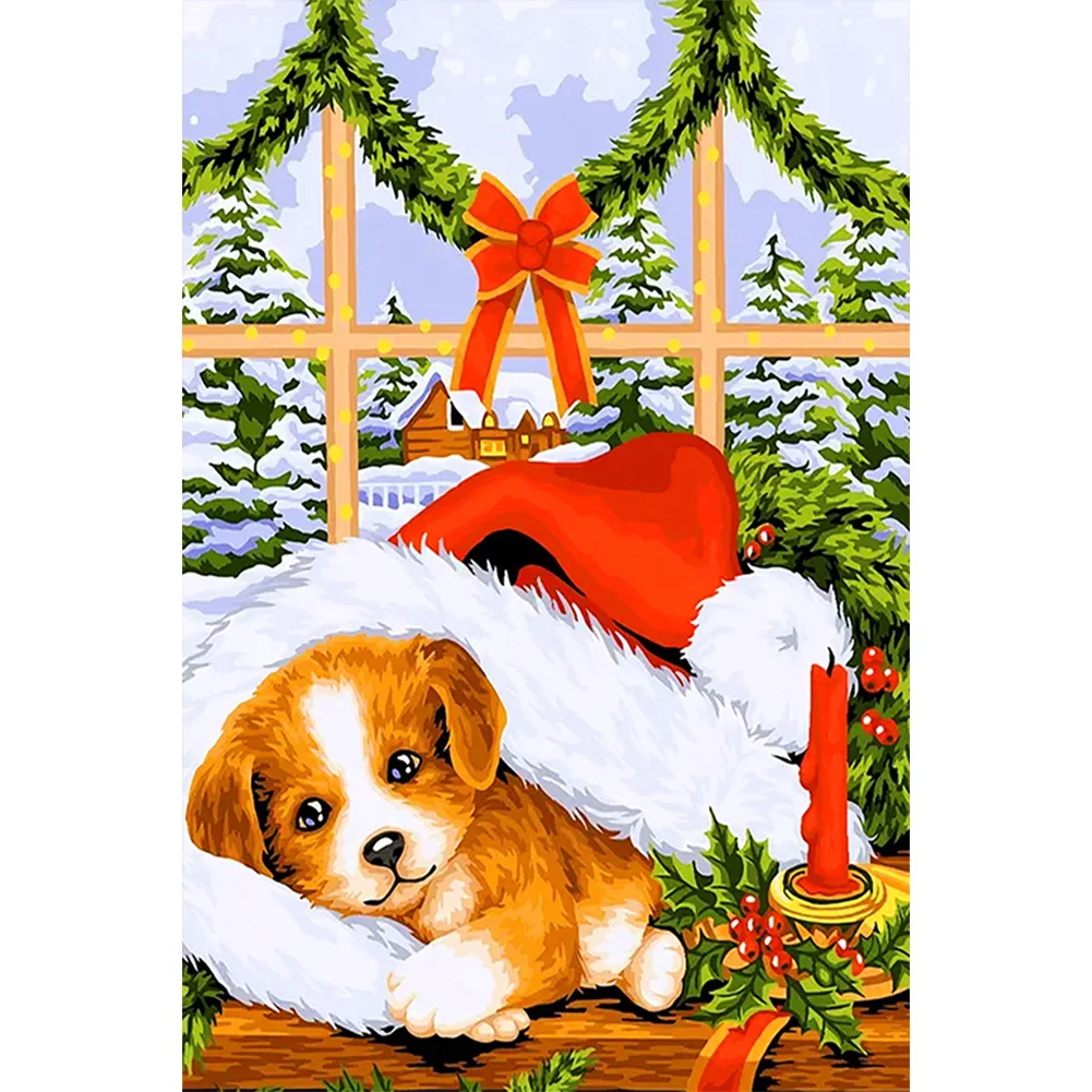 (40*60cm)Christmas Dog - Full Round Drill Diamond Painting