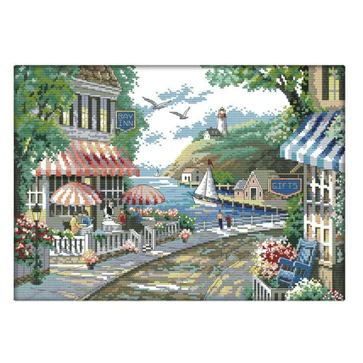 14CT Stamped Landscape Series DIY Print Cross Stitch Kits Embroidery Art Canvas Needlework Home Decor for Christmas Gift