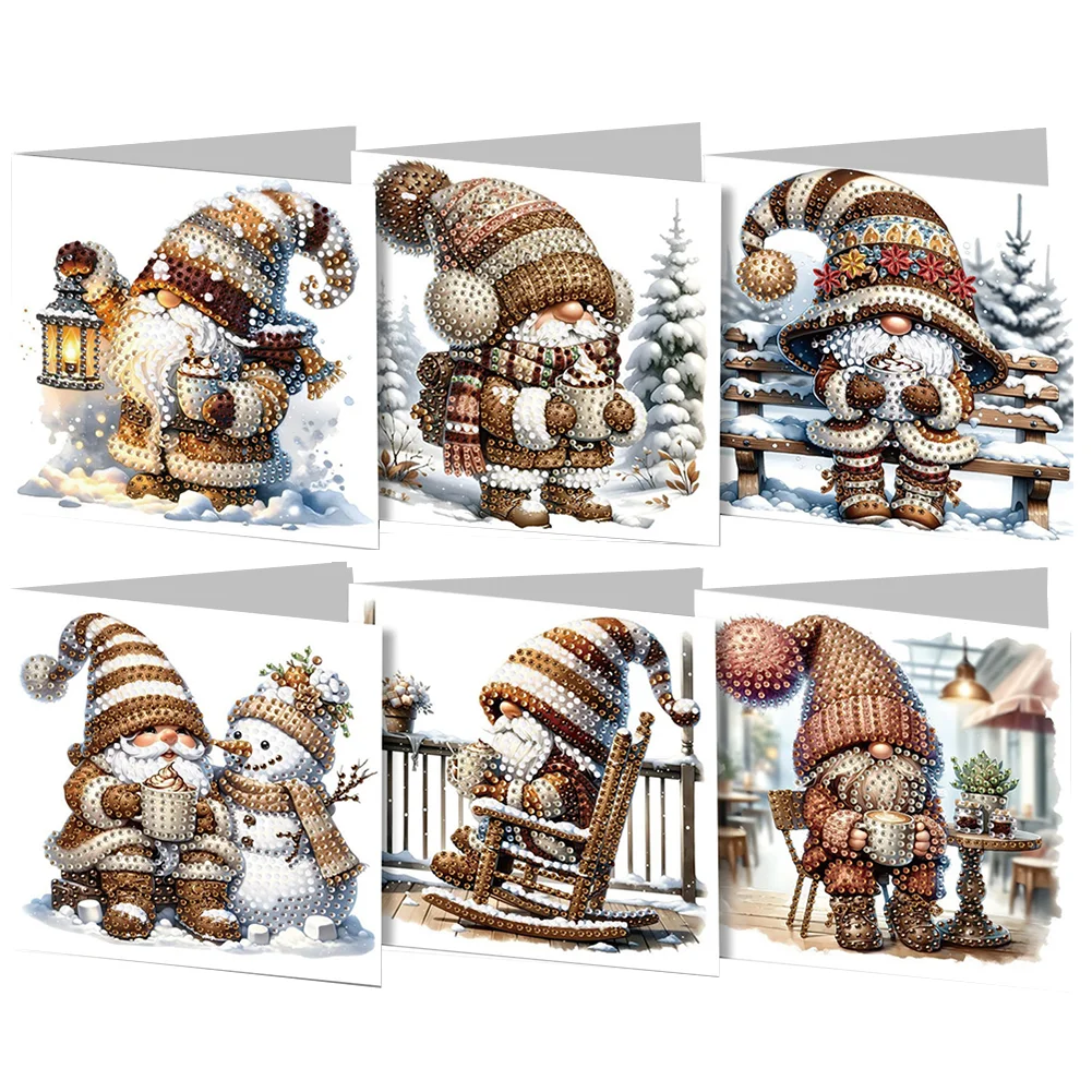 6PCS DIY Diamond Art Greeting Cards Winter Gnome Congratulations Cards & Gifts