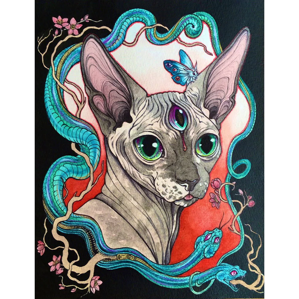 (DE7961) 5D Diamond Painting Hairless Cat Full Drill Mosaic Rhinestone Art (W830) 20X30cm