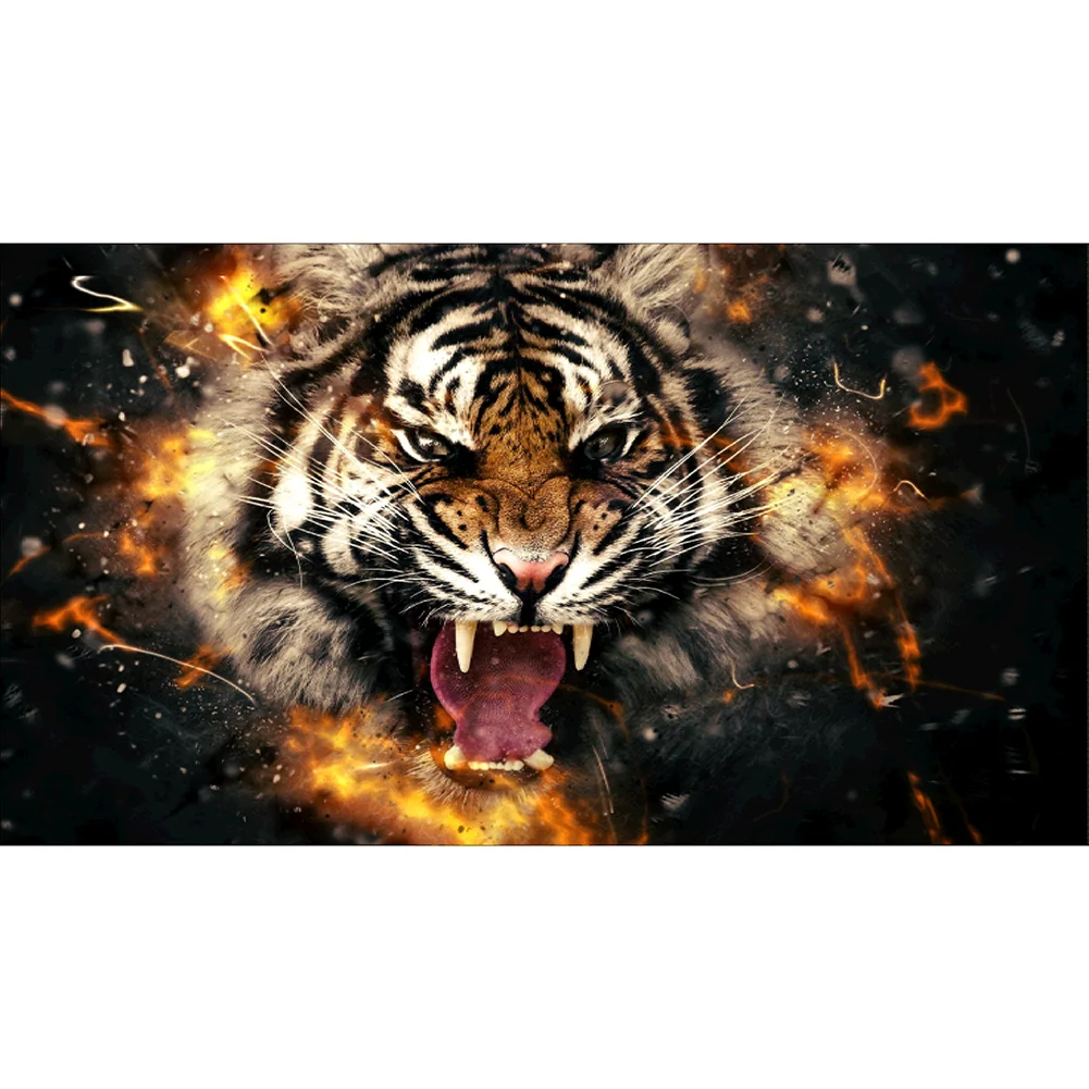 (DF3396) 5D DIY Full Drill Diamond Painting Fierce Tiger Cross Stitch Embroidery Kit 20X30cm