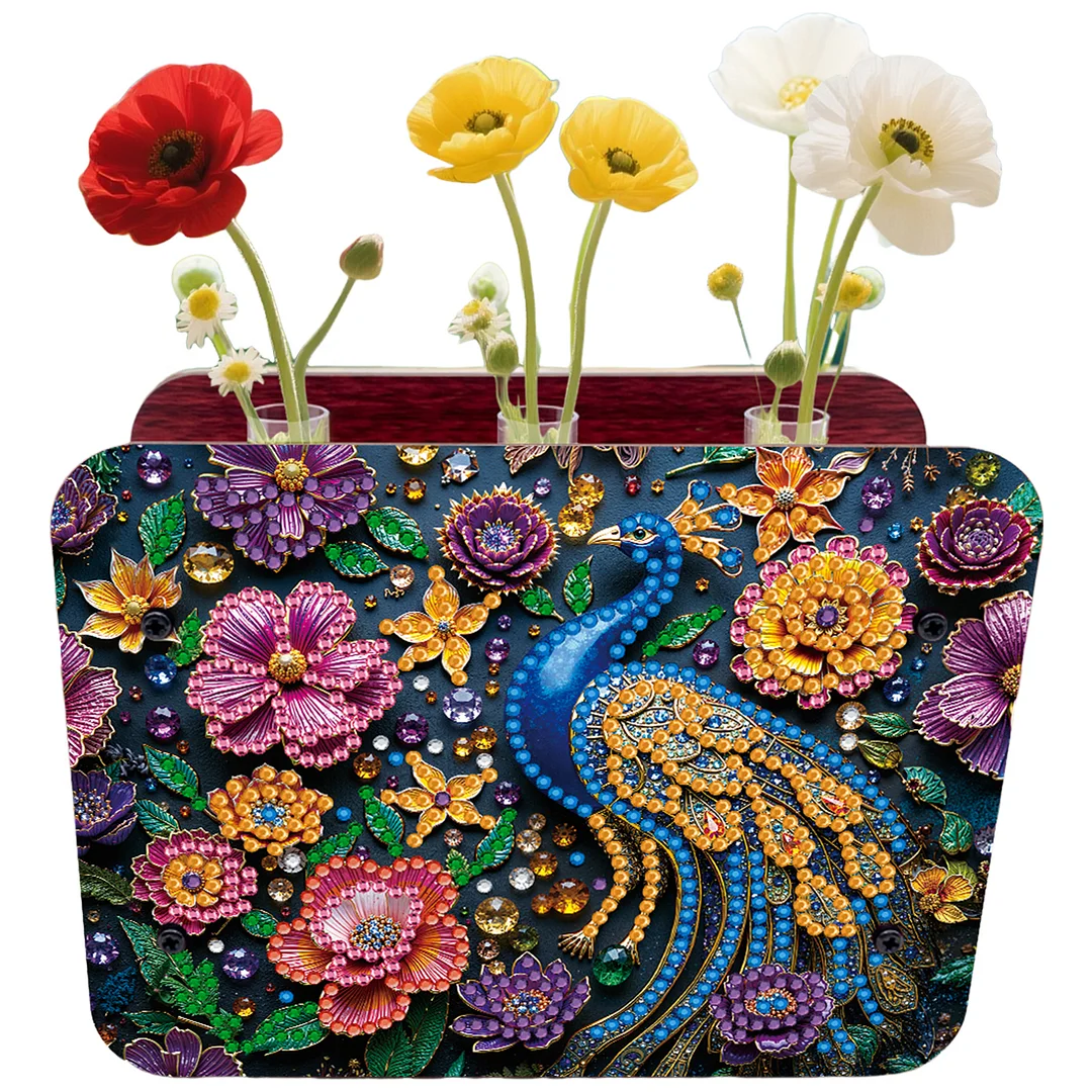 DIY Gem Peacock Heart Diamond Painting Wooden Tube Vase