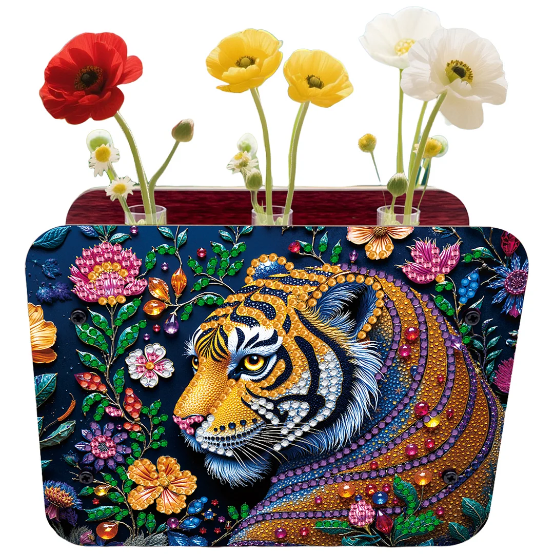 DIY Gem Tiger Heart Diamond Painting Wooden Tube Vase