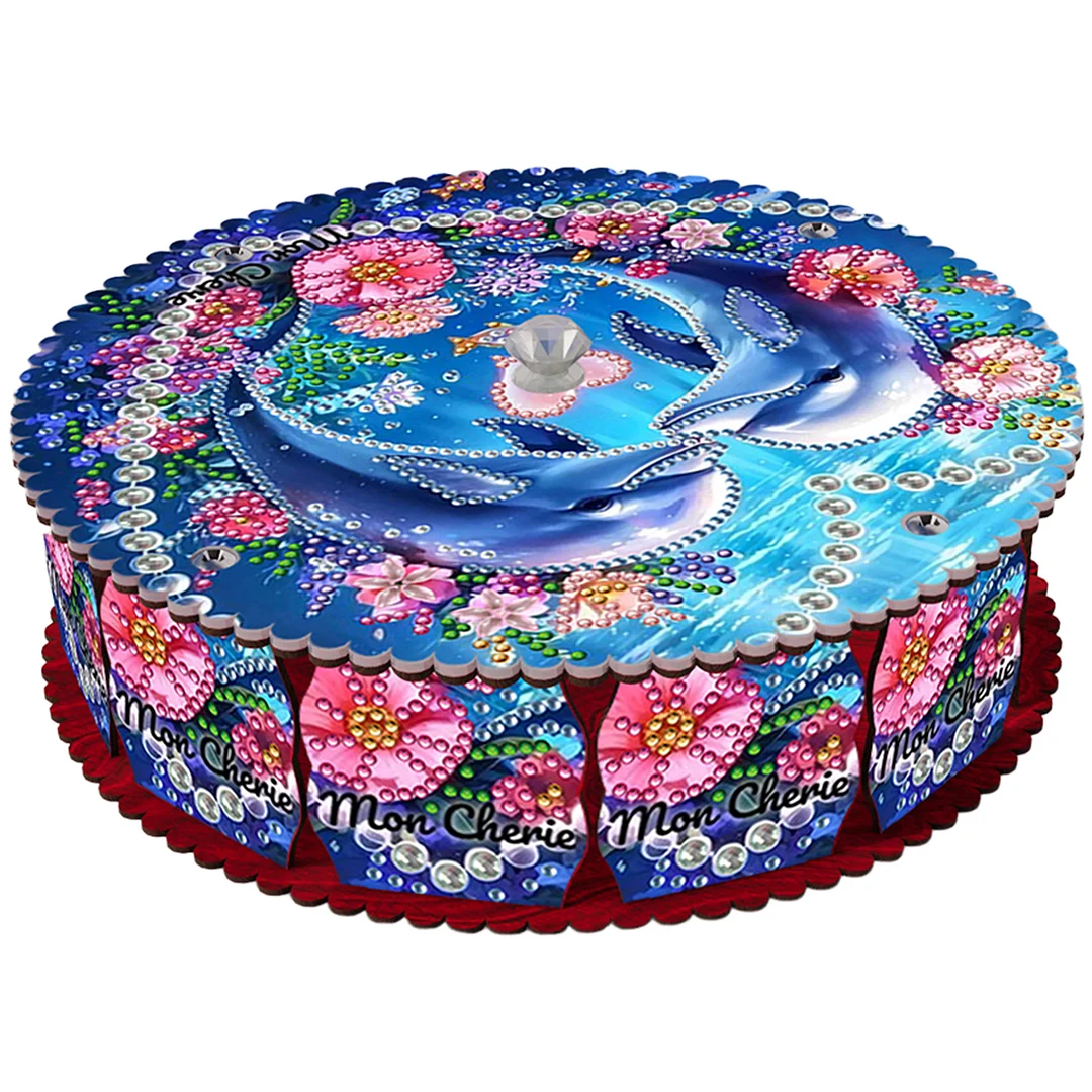 Dolphin 5D DIY Diamond Art Painting Snack Box with Lid Wood Storage Organizer