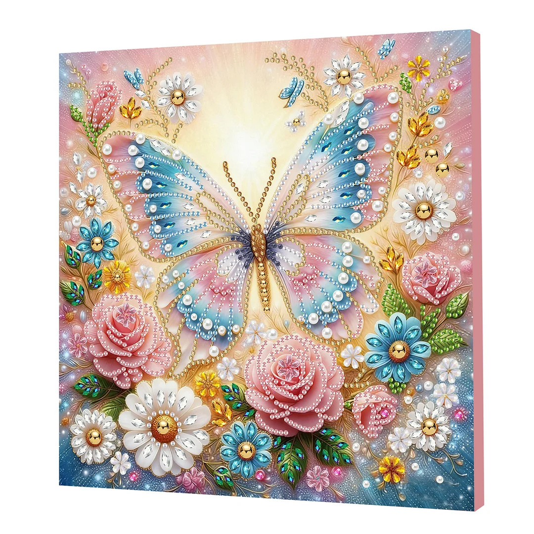 Framed Diamond Painting - Special Shaped - Butterfly and Flowers (25x25cm)