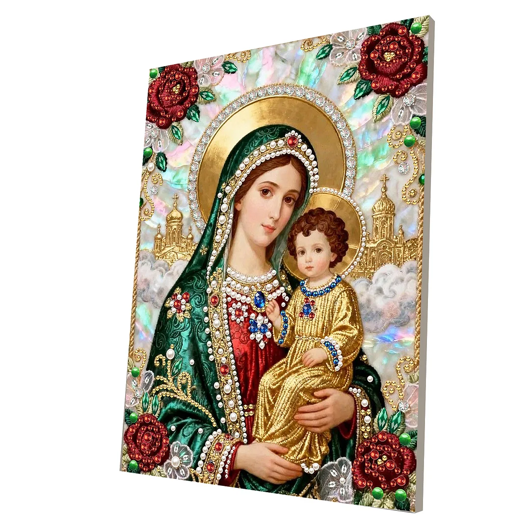 1 x Framed Canvas 1 x Rhinestone Bag 1 x Drill Pointing Tool Mother of God DIY Special Shape Drill Pearl Gem Diamond Art Painting Kit with Frame 11.81x15.75in Art Craft Pearl Diamond Painting for Adults Beginners Home Decor Features: 1.DIY Creative Experience: Enjoy hands-on creation by sticking pearls and gems to complete your own pearl gem diamond art painting kit, providing a sense of achievement and personalized decorative style for any space. 2.Versatile Decorative Fit: This diamond dots pearl gem painting serves as stylish wall decor for living rooms, bedrooms, or office spaces, easily elevating the visual appeal and ambiance in various environments. 3.Refined Three-Dimensional Texture: The art craft pearl diamond painting features high-grade diamonds that deliver a delicate, sophisticated 3D tactile and visual effect, presenting an exquisite level of decoration. 4.Beginner-Friendly Assembly: Arriving with complete tools and clear instructions, the pearl art painting set is easy to create, allowing those with no crafting experience to achieve professional-looking results smoothly. 5.Lasting and Long-Lasting Beauty: With firmly attached pearls and stable backing material, this diamond art pearl painting kit maintains its attractive appearance over time without deformation or fading.This product is not suitable for people under 18.
