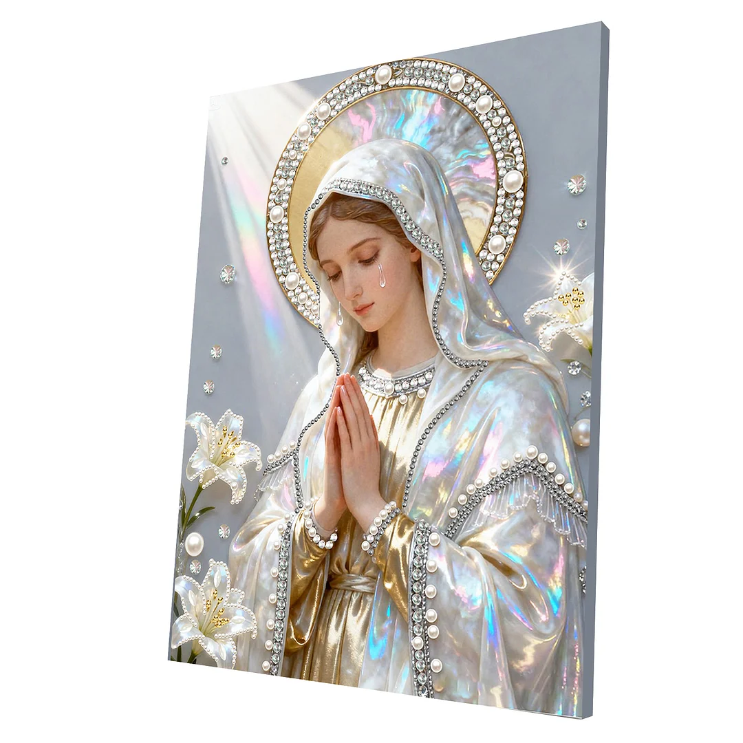 1 x Framed Canvas 1 x Rhinestone Bag 1 x Drill Pointing Tool Mother of God DIY Special Shape Drill Pearl Gem Diamond Art Painting Kit with Frame 11.81x15.75in Art Craft Pearl Diamond Painting for Adults Beginners Home Decor Features: 1.DIY Creative Experience: Enjoy hands-on creation by sticking pearls and gems to complete your own pearl gem diamond art painting kit, providing a sense of achievement and personalized decorative style for any space. 2.Versatile Decorative Fit: This diamond dots pearl gem painting serves as stylish wall decor for living rooms, bedrooms, or office spaces, easily elevating the visual appeal and ambiance in various environments. 3.Refined Three-Dimensional Texture: The art craft pearl diamond painting features high-grade diamonds that deliver a delicate, sophisticated 3D tactile and visual effect, presenting an exquisite level of decoration. 4.Beginner-Friendly Assembly: Arriving with complete tools and clear instructions, the pearl art painting set is easy to create, allowing those with no crafting experience to achieve professional-looking results smoothly. 5.Lasting and Long-Lasting Beauty: With firmly attached pearls and stable backing material, this diamond art pearl painting kit maintains its attractive appearance over time without deformation or fading.This product is not suitable for people under 18.