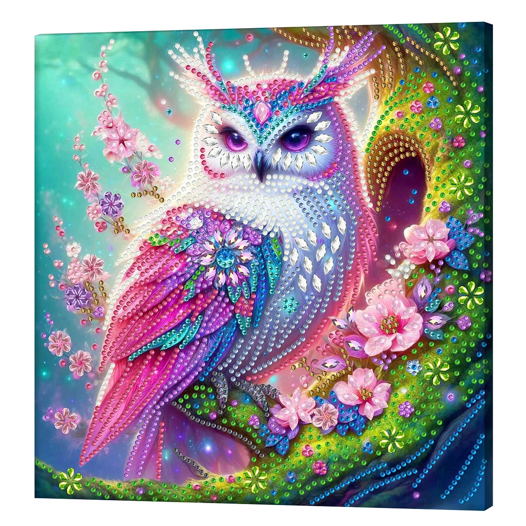 Framed Diamond Painting - Special Shaped - Pink Owl (25x25cm)