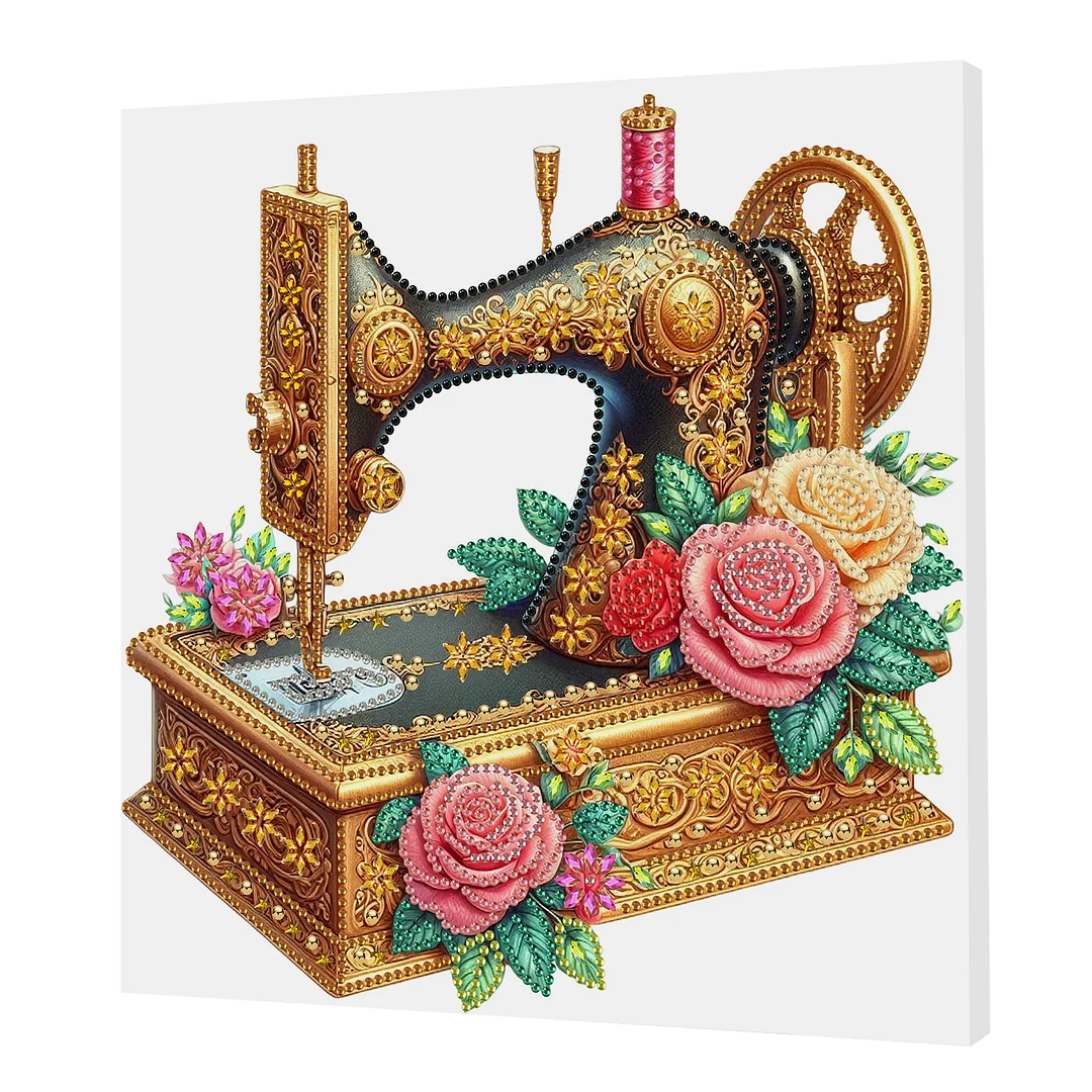 Sewing Machine DIY Special Shape Drill Gem Art Diamond Painting Kits with Frame 9.84x9.84in Diamond Dots Paintings Picture Arts Craft for Adults Beginners Home Decor