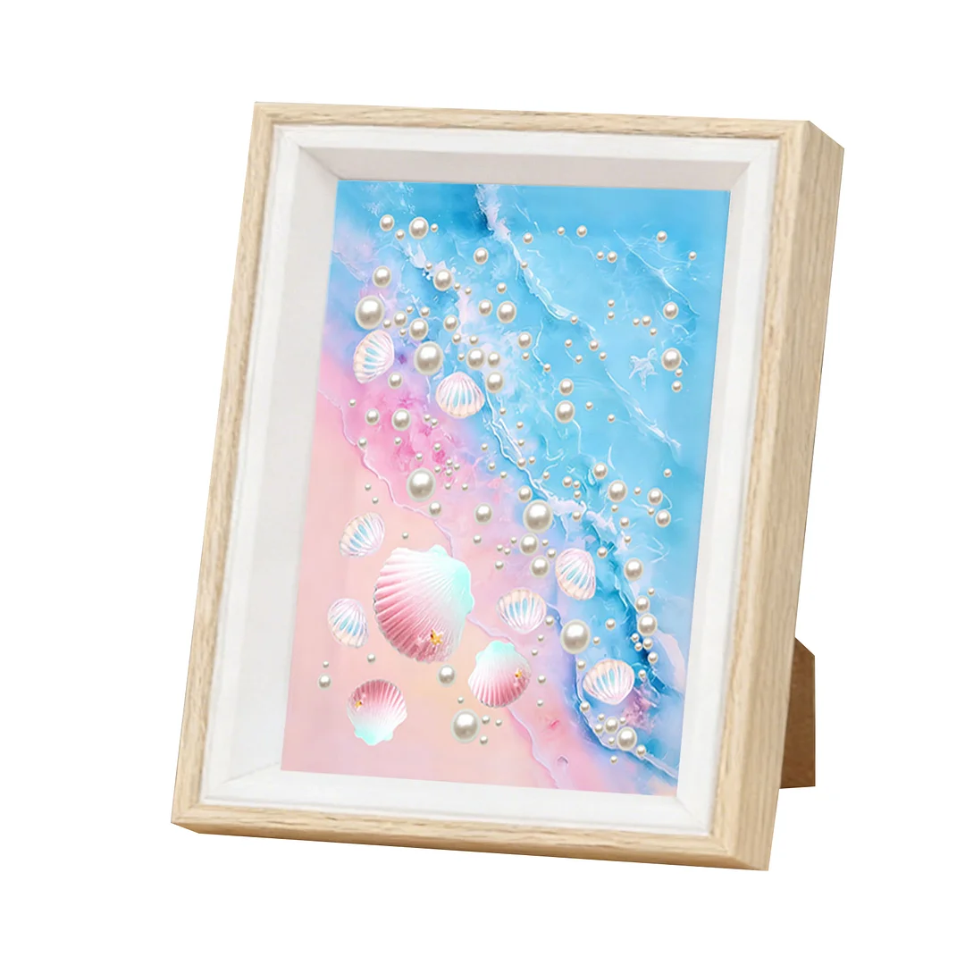Framed Pearl Diamond Painting - Special Shaped - Seashell Waves (17x22cm)
