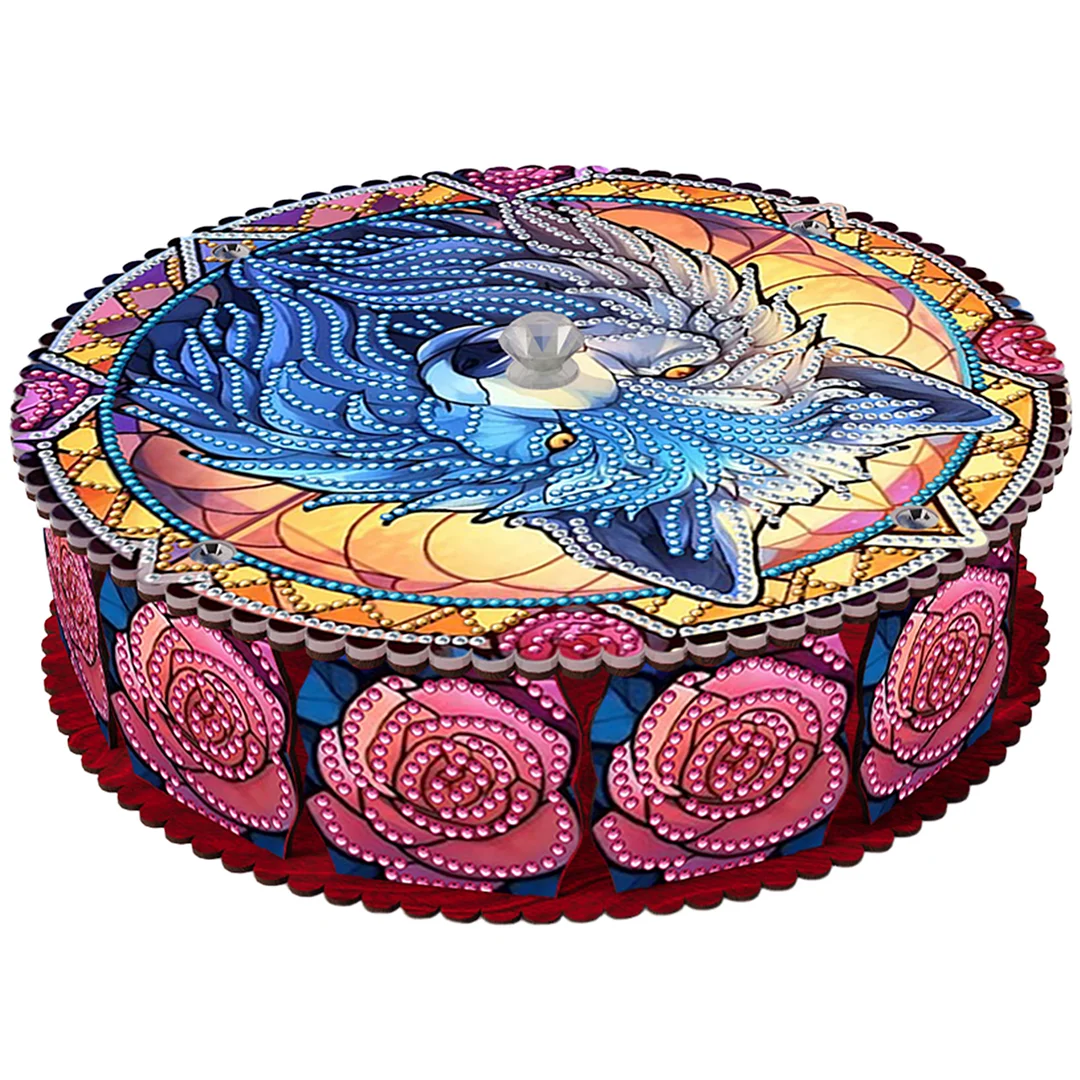 Wolf 5D DIY Diamond Art Painting Snack Box with Lid Home Wood Storage Organizer